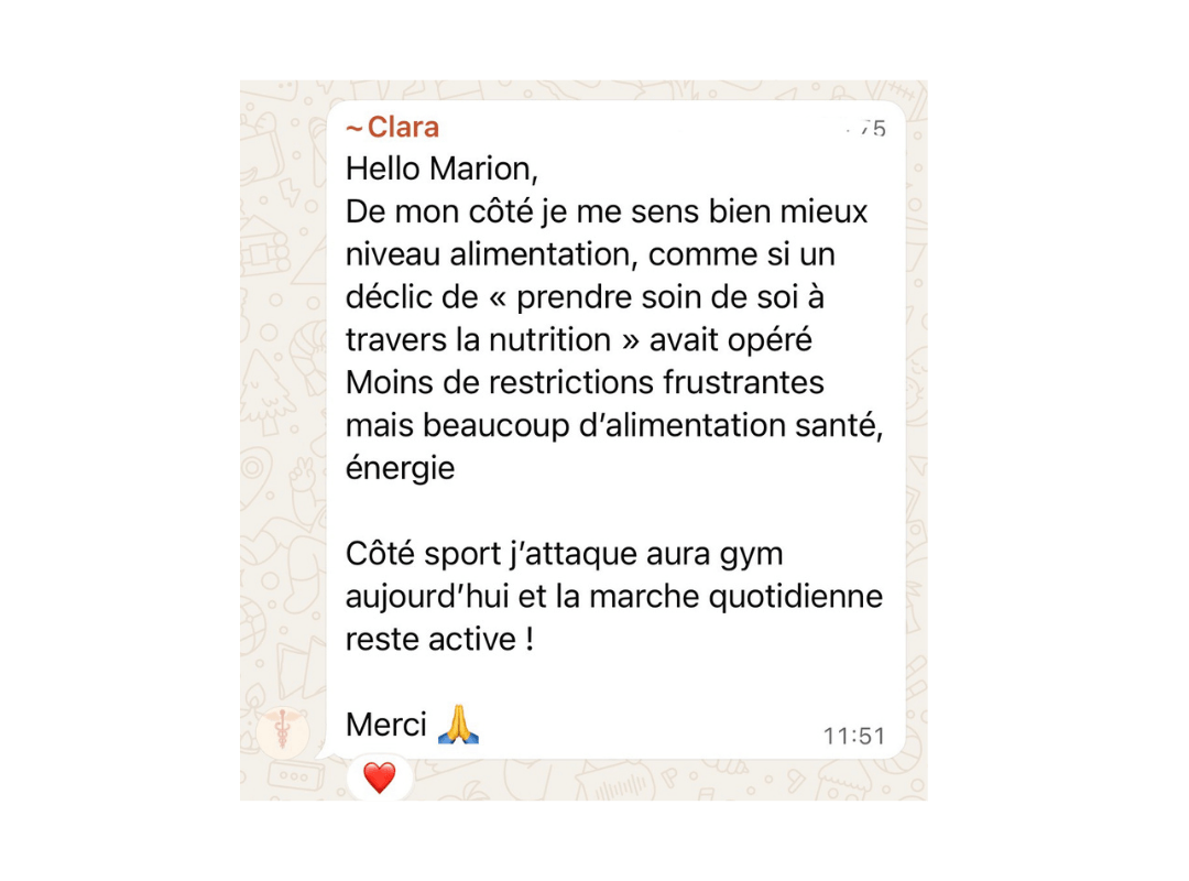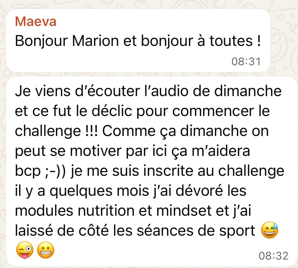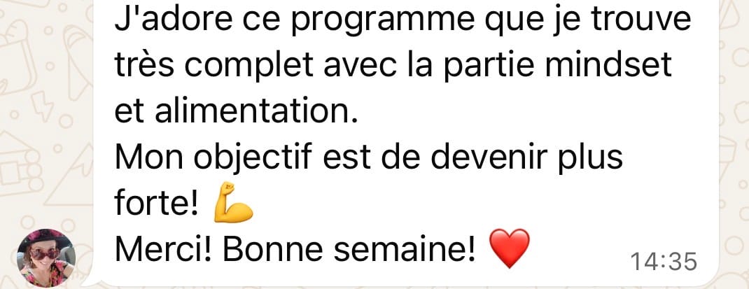 Si tu as la moindre question, je suis disponible dans le groupe 5 jours par semaine