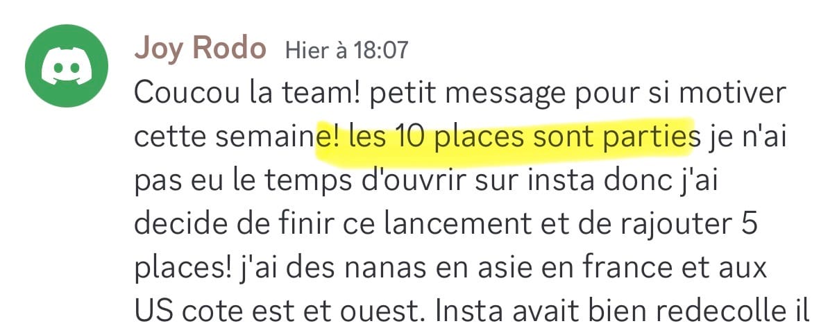 Tu as accès au groupe Discord et aux vidéos immédiatement.