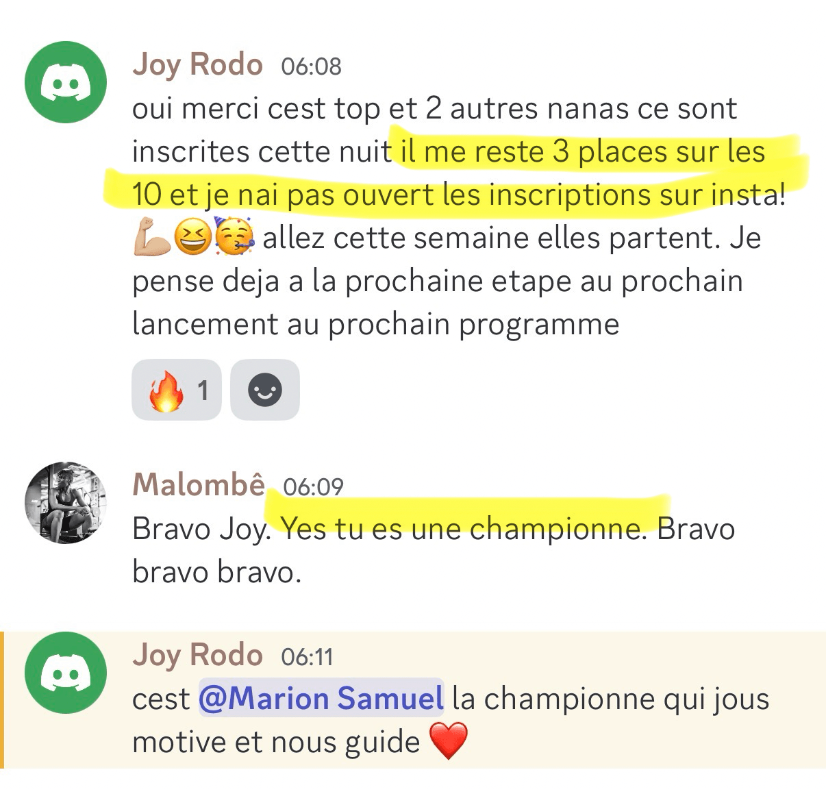 Je suis très accessible que ce soit dans le groupe Discord ou lors des séances en live.